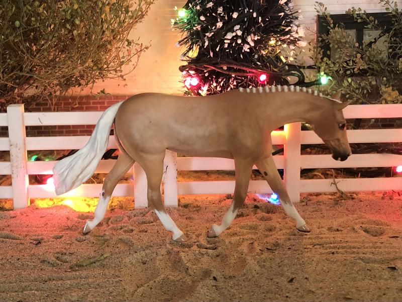 REMINGTON~Custom Stablemate scale resin Thoroughbred-sculpted by D’Arry Jone Frank. Limited edition of 25, I MIGHT have one more body to paint…Braided mane and custom loose tail, painted a creamy dapple palomino with moderate chrome. $400.00