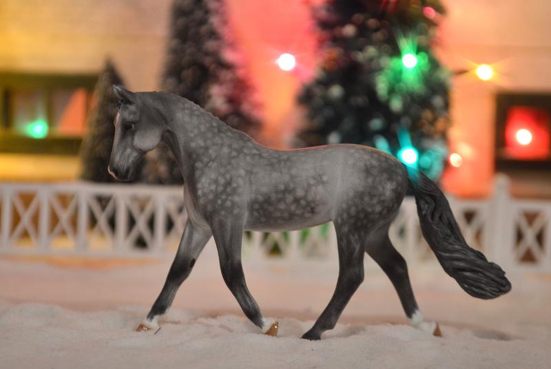 New mold, this fellow is now an Irish Thoroughbred gelding field hunter. Can’t you just see him going out with the hounds? This is a lovely performance horse, could even be in harness! All legs cleaned up and slightly modified, he has had his head re-done, with new ears. Braided mane and loose tail, topped off with a mellow dapple grey colour. New. $400.00