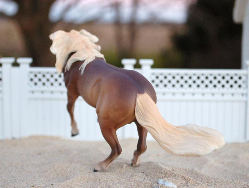 Custom Breyer Breeds of the World Resin Mustang-now a Haflinger with ‘tude!! Major overhaul on the head and neck, the head and ears had to be totally resculpted to get that Haflinger pony look to it, but isn’t he cool now? He has a new neck, and loads of mane (both sides!) to be breed typy for a stallion. Big thick tail flying out behind him, he’s nice and secure on his non-removable base. $575.00