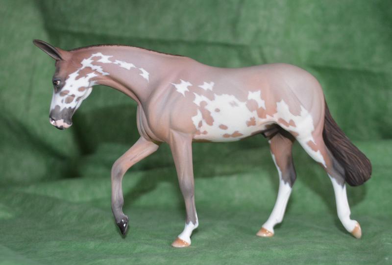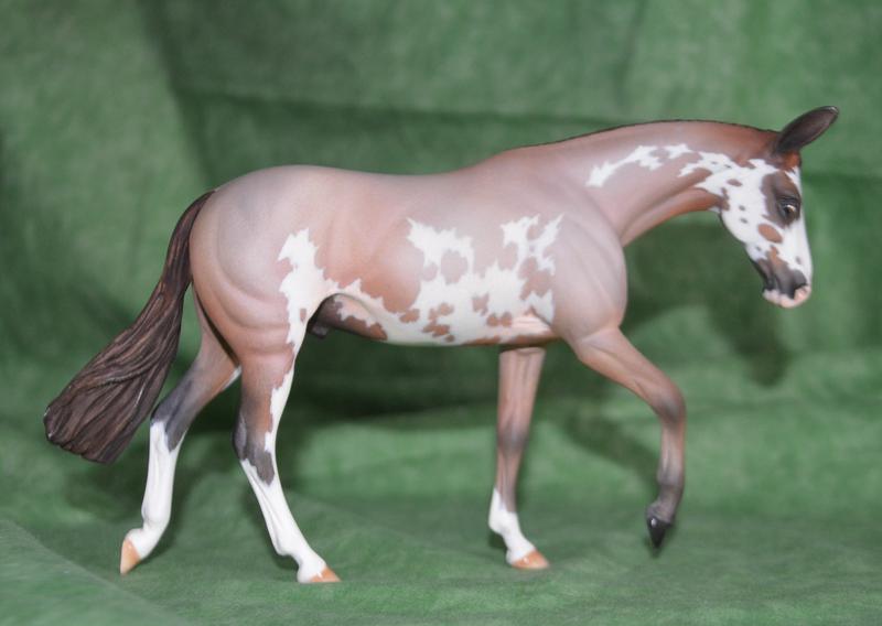 D'Arry Jone Frank. Customized ears, all legs modified, roached mane and a softly swishing tail. Perfect performance mule! Painted a flashy red roan overo. $525.00